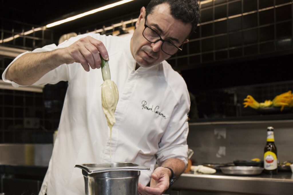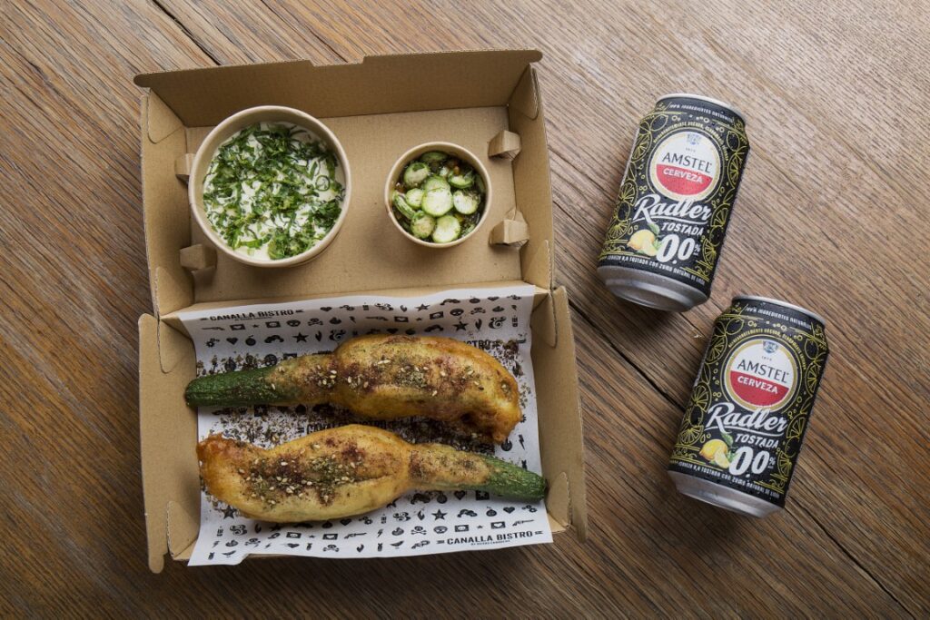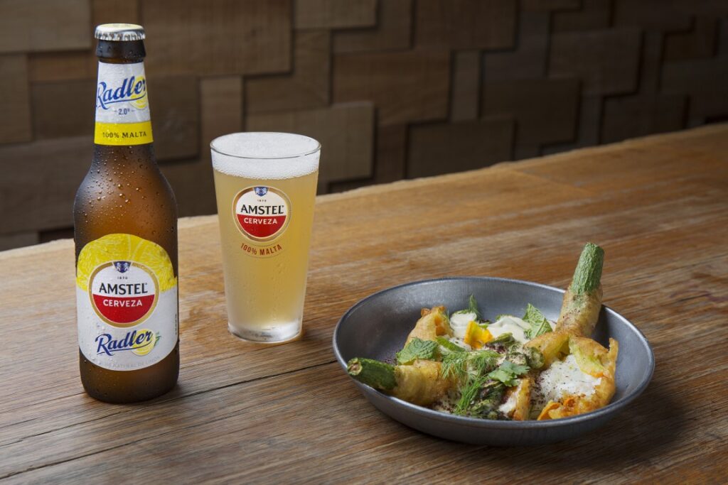 Se trata de ‘Flor de calabacín rellena en tempura de Amstel Radler’, una receta que invita a romper las ideas preconcebidas, echando una nueva mirada a los productos de proximidad. “Todo el mundo conoce el calabacín, una verdura que ahora está de temporada. Pero en España no se suelen tomar cuando acaban de florecer y todavía son pequeños. El sabor se concentra en una pulpa mucho más consistente y se pueden aprovechar los pétalos de su flor, que invitan a abrir la mente y jugar con ellos en la cocina”, asegura el cocinero.